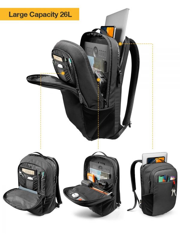 + Nhiều ngăn: Ba lô có 3 ngăn chứa rộng rãi với hơn 15 túi. Một ngăn chính và một ngăn phụ kiện, rộng rãi cho iPad, chuột, bộ sạc, sách, quần áo, ví, vv Một ngăn đựng laptop riêng biệt chứa tới 15” và ipad