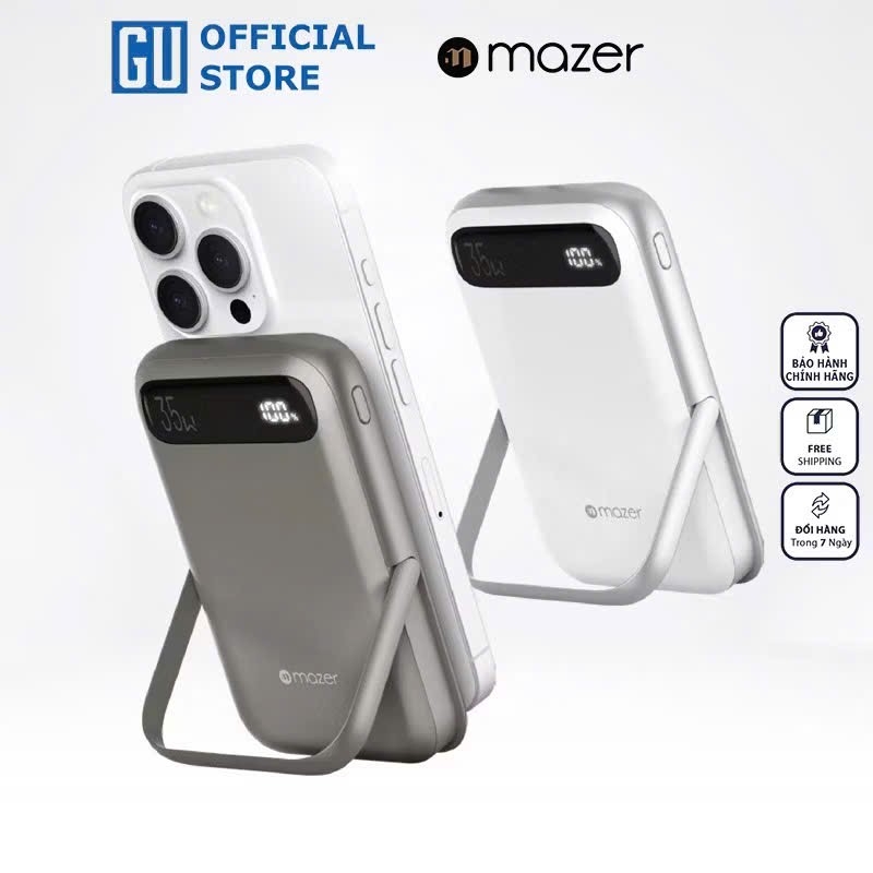 Chi tiếtPin Dự Phòng Không Dây Mazer MagAir17 10000mAh Sạc nhanh Qi2 15W - Cổng USB-C PD 35W - Tích hợp chân đế nhôm - Màn hình hiển thị thông minh Mang theo nguồn năng lượng mạnh mẽ mọi lúc mọi nơi với Mazer MagAir17 – pin dự phòng không dây từ tính được thiết kế cho người dùng hiện đại. Với dung lượng 10000mAh, sạc không dây chuẩn Qi2, cổng USB-C PD 35W là giải pháp sạc hiệu quả, nhanh chóng và đẳng cấp. Hiệu năng vượt trội, linh hoạt trong mọi tình huống Cung cấp công suất sạc lên đến 35W qua cổng...