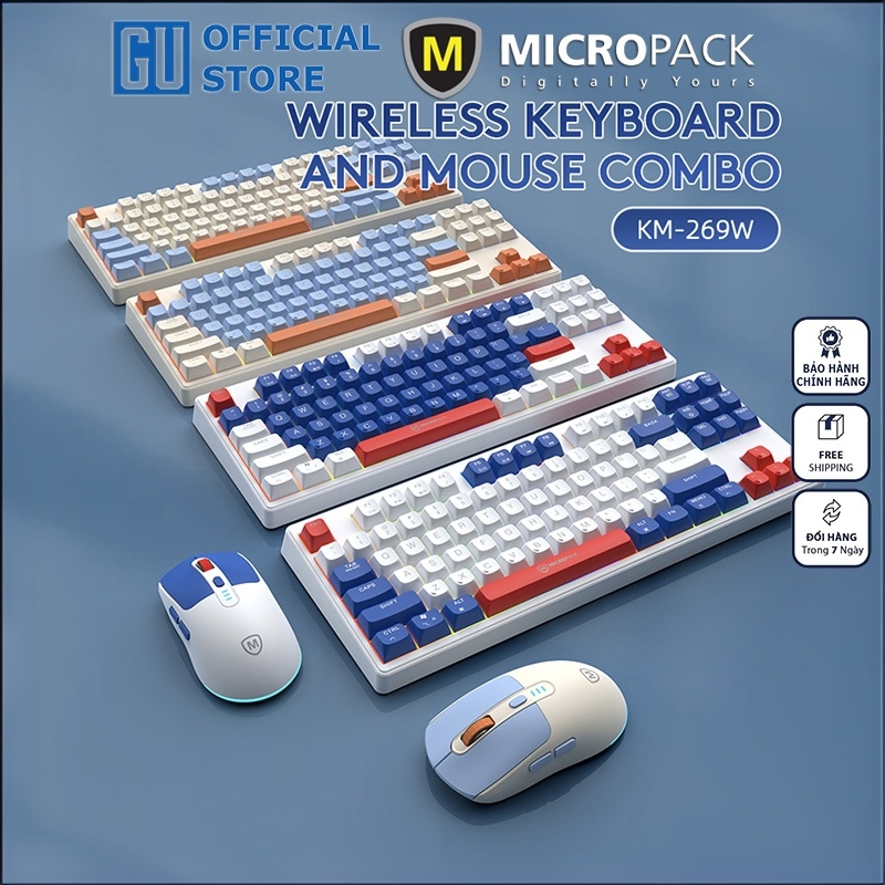 Chi tiếtBộ Bàn Phím Kèm Chuột Không Dây MicroPack Lifestyle KM-269W – Chuẩn Mực Mới Cho Không Gian làm việc Bộ Bàn Phím Chuột Không Dây MicroPack Lifestyle KM-269W – Thiết Kế Thời Trang, Tích Hợp Pin Sạc Tiện Lợi MicroPack Lifestyle KM-269W là combo bàn phím chuột không dây thời trang đến từ thương hiệu Micropack – nổi tiếng với các phụ kiện công nghệ chất lượng cao, xuất xứ Hong Kong. Với triết lý “Color your life – Design your style”, sản phẩm không chỉ đáp ứng nhu cầu sử dụng hàng ngày mà còn giúp bạn thể hiện cá tính...