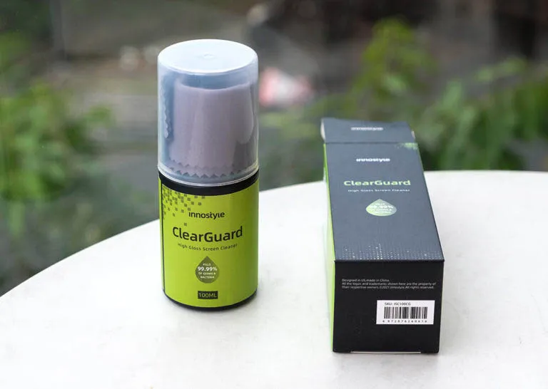 Innostyle Clearguard của Innostyle không chứa cồn và hóa chất độc hại, giúp bảo vệ màn hình khi vệ sinh, và có thể sử dụng thoải mái trên tất cả các màn hình và bề mặt, loại bỏ hiệu quả các vết dầu, bụi và vết ố để giữ cho màn hình của bạn trông như mới
