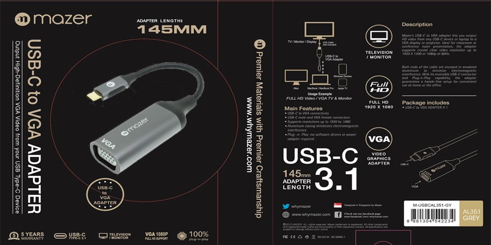 Xem ngay: BỘ CHUYỂN ĐỔI HỖ TRỢ ĐỘ PHÂN GIẢI HD TRỞ LÊN MAZER ALU USB-C TO VGA 1080P ADAPTER
