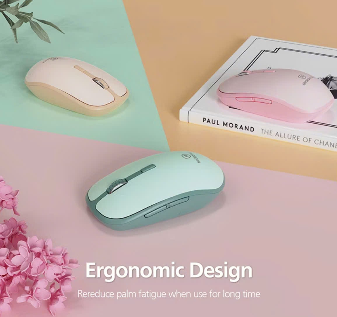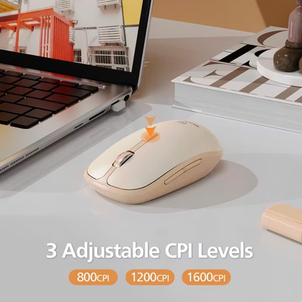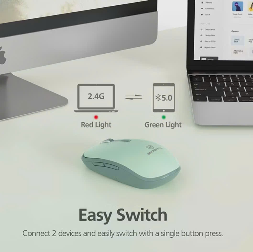 Kết nối không dây chế độ kép: Hỗ trợ cả Bluetooth 5.0 và 2.4G, cho phép kết nối và điều khiển cùng lúc hai thiết bị. Chuyển đổi dễ dàng chỉ với một nút nhấn dưới đáy chuột – tiện lợi cho dân văn phòng, học sinh sinh viên hay người làm việc đa thiết bị.