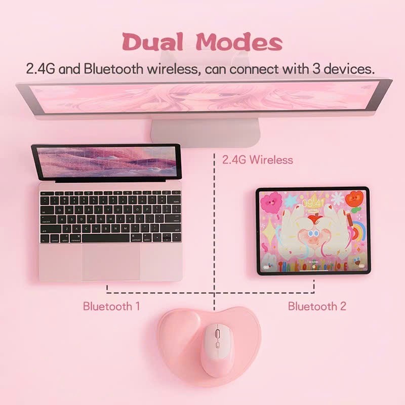 Chế độ kép với 3 kênh: Hỗ trợ kết nối Bluetooth 5.0, Bluetooth 3.0 và 2.4G. Chuột không dây MicroPack Soft Silicone Lifestyle MS-201W Kết nối nhanh chóng với ba thiết bị cùng lúc, dễ dàng chuyển đổi chỉ bằng một nút bấm. Phù hợp cho máy tính, laptop, điện thoại và máy tính bảng.