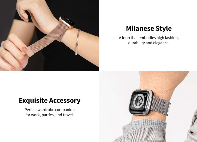 + Được thiết kế cho Apple Watch series 1/2/3/4/5/6/7/8/SE/Ultra size 38/40/41mm & 42/44/45/49mm (Dây cho khung 38mm, 40mm và 41mm sử dụng được với nhau và dây cho khung 42mm, 44mm, 45mm và 49mm sử dụng được với nhau).