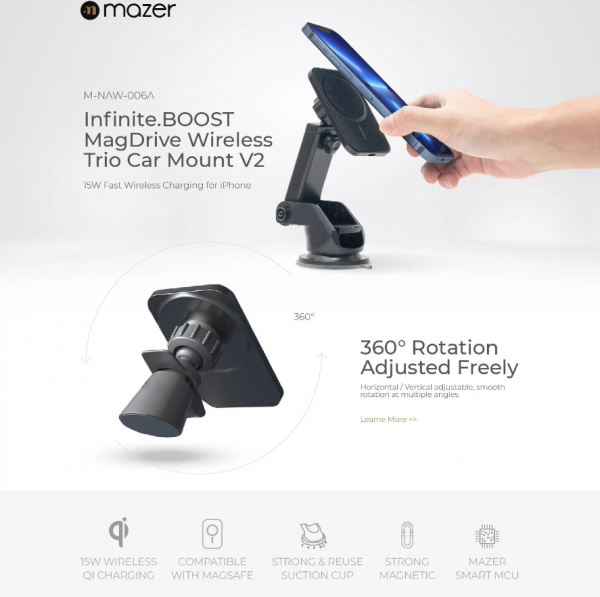 Có thanh toán bằng VNPAY QR nhanh chóng tiện lợiGiá Đỡ Sạc Không Dây Mazer Infinite.BOOST Air.Drive V2.0 15W Wireless Car Mount giá đỡ sạc không dây xe hơi