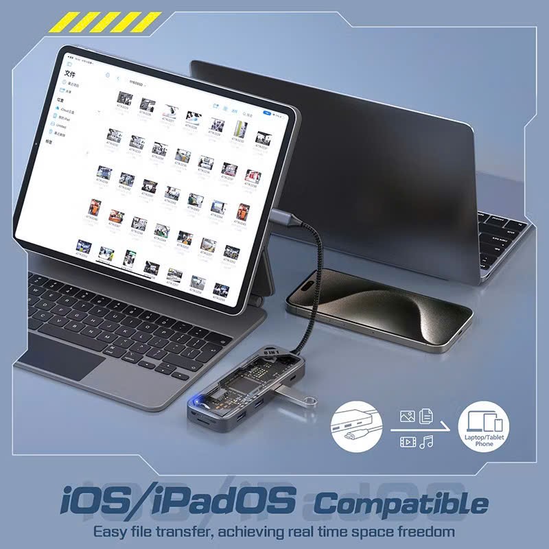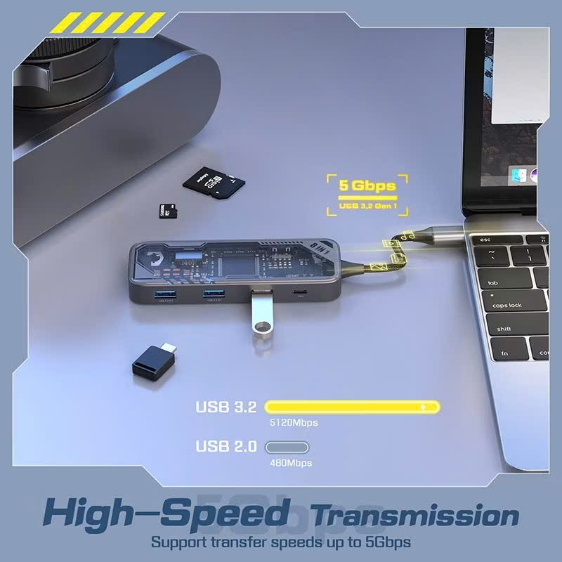 Kết nối mạnh mẽ – Tương thích đa nền tảng: Hỗ trợ Type-C sang HDMI 2.0, 3 cổng USB 3.0 tốc độ cao, đầu đọc thẻ SD/TF kép – cho khả năng kết nối linh hoạt với laptop, điện thoại thông minh, máy tính bảng… Đặc biệt, HDMI hỗ trợ xuất hình ảnh 4K@60Hz mang đến trải nghiệm giải trí và làm việc sắc nét vượt trội.