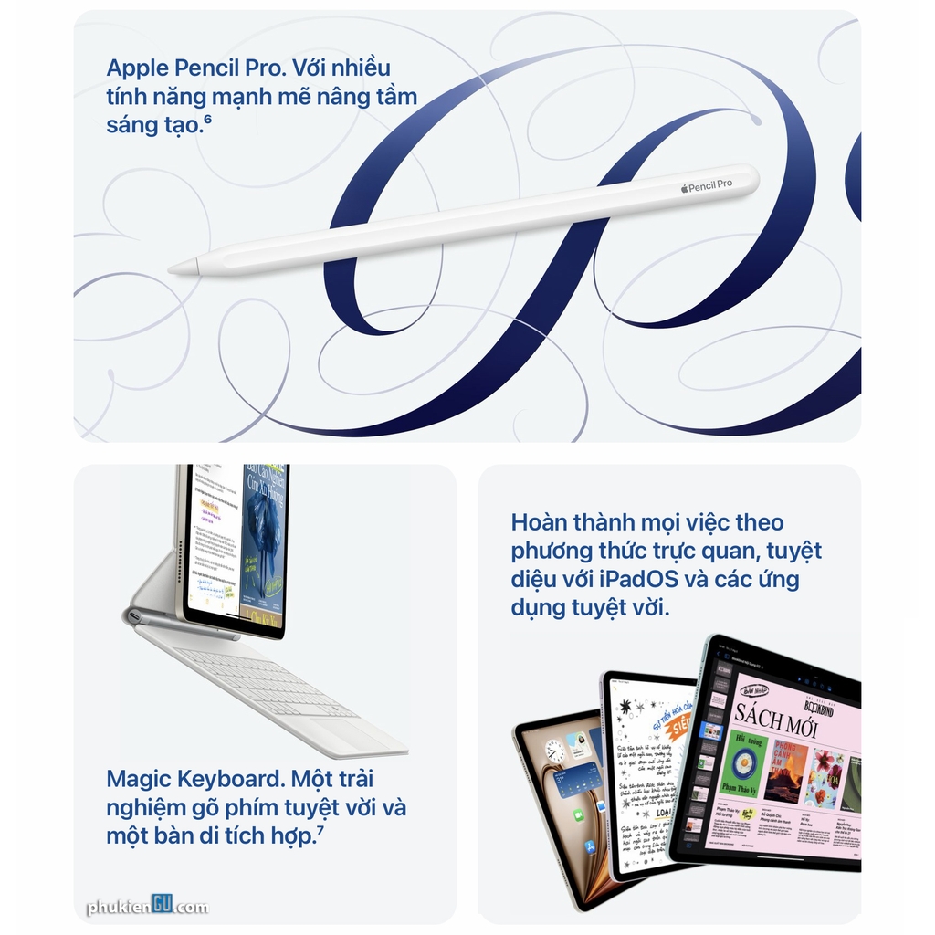 Ngoài ra, tại sự kiện “Let’s Loose” tối 07/05/2024, Apple cũng giới thiệu hai phụ kiện mới là Apple Pencil Pro và Magic Keyboard mới dành cho những phiên bản iPad mới này.