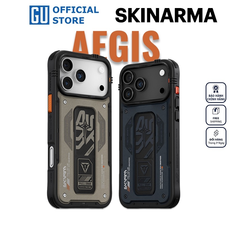 Có thanh toán bằng VNPAY QR nhanh chóng tiện lợiỐp Lưng Cho iPhone 17 Pro Max SKINARMA AEGIS Trang Bị Lớp Giả Da Thuần Chay Chân Đế Tích Hợp Mag-Charge Sạc Không Dây