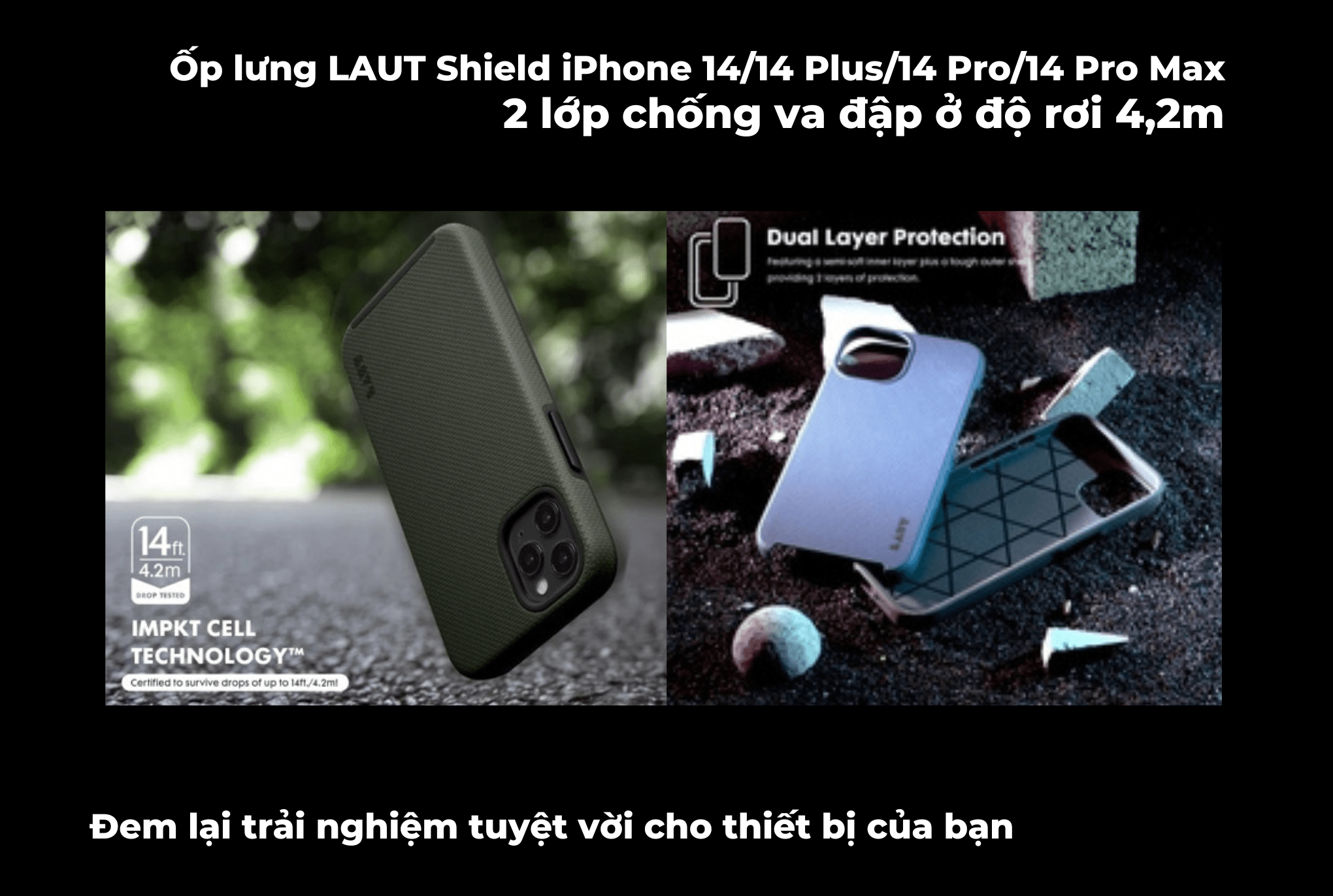 Ốp lưng LAUT Shield For iPhone 14/14 Plus/ 14 Pro/ 14 Pro Max 2 lớp chống va đập ở độ rơi 4,2 - Với tính năng nổi bật.