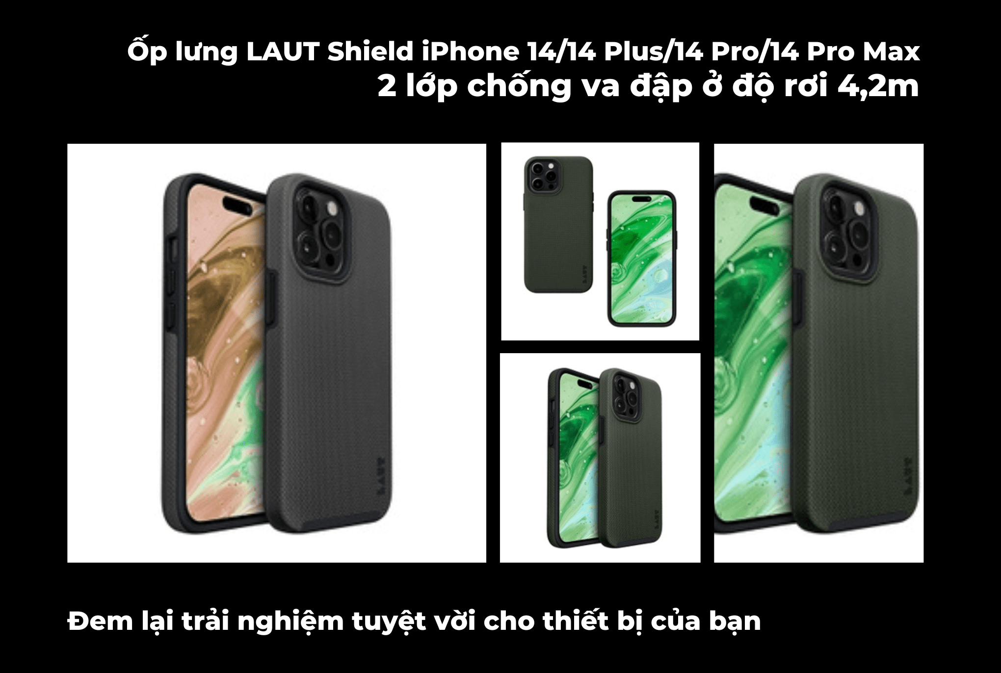 Ốp lưng LAUT Shield iPhone 14/14 Plus/14 Pro/14 Pro Max 2 lớp chống va đập ở độ rơi 4,2m - Đem lại trải nghiệm tuyệt vời cho thiết bị của bạn.