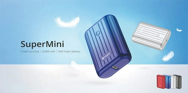 Pin dự phòng Mazer Super MINI V2 chứa đựng dung lượng pin trữ tận 10.000mAh, gói gọn trong thân hình nhỏ nhắn và bỏ túi tiện lợi. Kích thước tổng của pin dự phòng Mazer Super MINI V2 chỉ bằng chiếc thẻ ATM, càng tăng thêm tính tiện ích cho món phụ kiện khi bạn muốn sạc pin nhanh cho điện thoại.