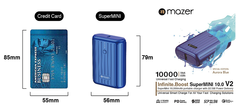 - Nhỏ gọn nhỏ hơn 30% so với pin 10.000mAh truyền thống, nhỏ hơn cả chiếc thẻ ATM của bạn