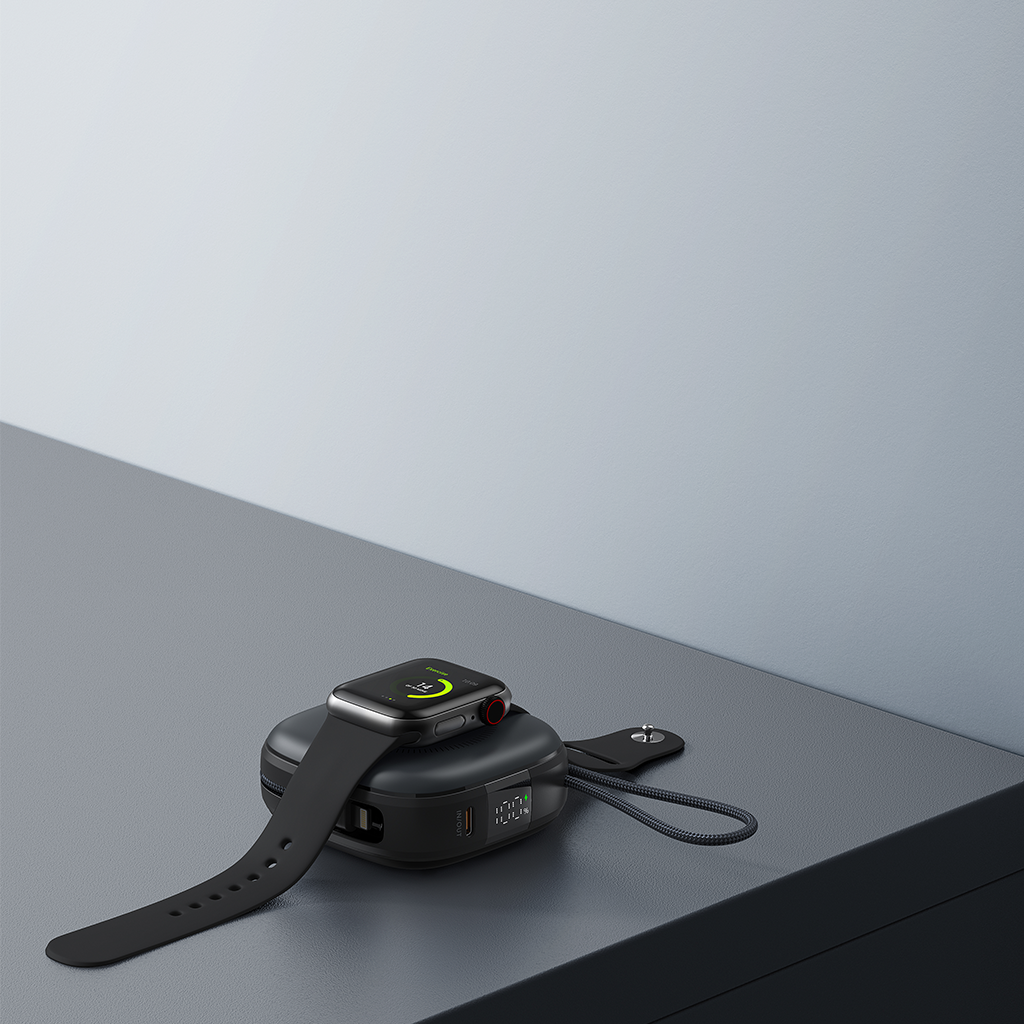 Không cần mang theo bộ sạc riêng, Mazer MagLink18i đã tích hợp sẵn bộ sạc không dây 2.5W dành riêng cho Apple Watch, giúp bạn dễ dàng nạp năng lượng cho smartwatch mà không cần đến dây cáp.
