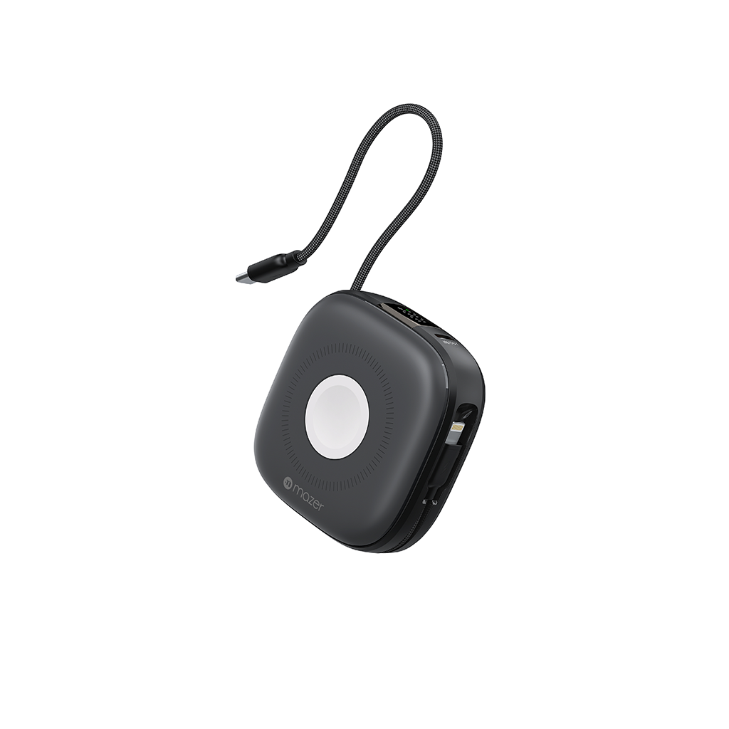 • Cáp tích hợp kép: Cáp Lightning và USB-C cho khả năng sạc nhanh 20W cho iPhone 15 trở lên hoặc bất kỳ thiết bị nào hỗ trợ Lightning.