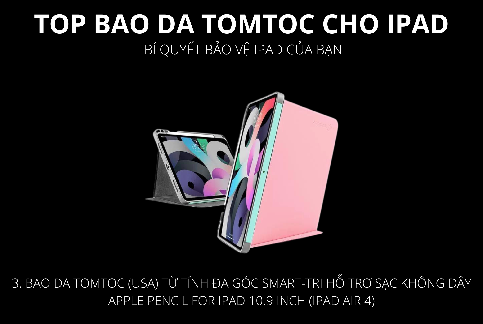 Top bao da Tomtoc cho iPad - Bao da TOMTOC (USA) Từ tính đa góc Smart-Tri Hỗ trợ sạc không dây Apple Pencil For iPad 10.9 Inch (iPad Air 4)