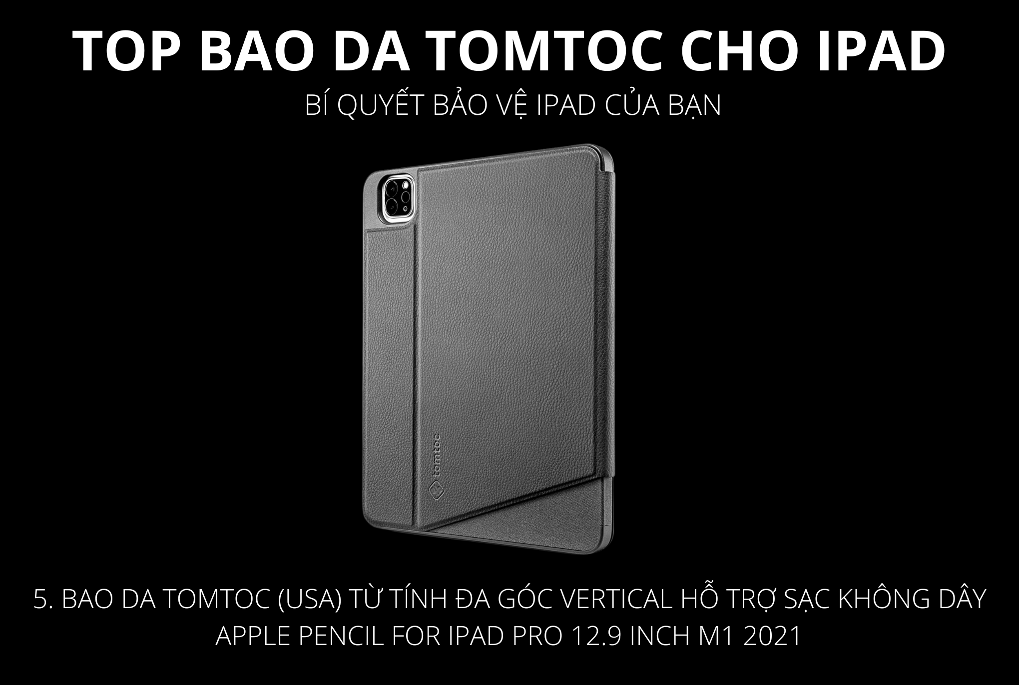 Top bao da Tomtoc cho iPad - Bao da TOMTOC (USA) Từ tính đa góc Vertical Hỗ trợ sạc không dây Apple Pencil For iPad Pro 12.9 Inch M1 2021