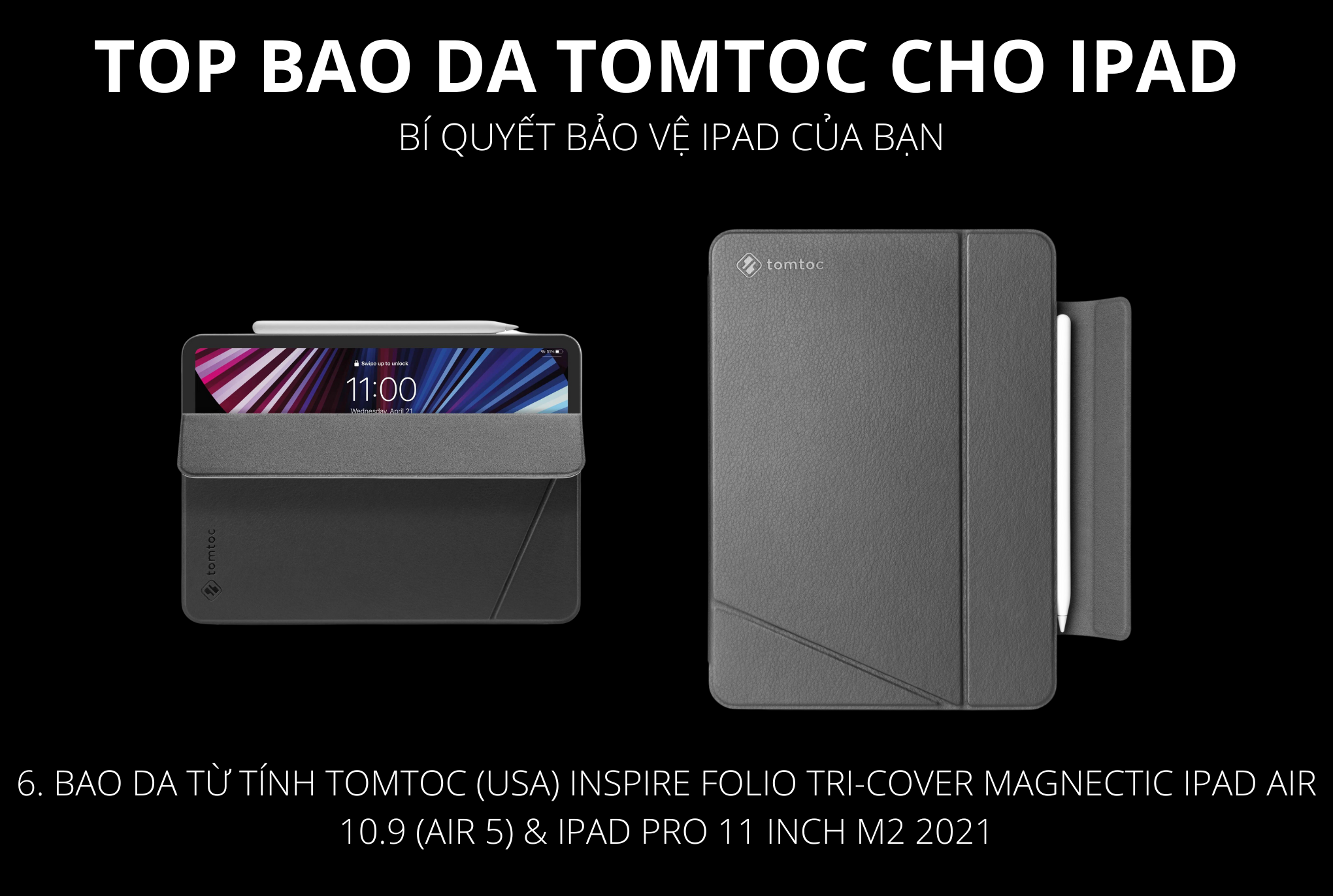 6. Bao da từ tính TOMTOC (USA) Inspire Folio Tri-Cover Magnectic iPad Air 10.9 (Air 5) & iPad Pro 11 Inch M2 2021